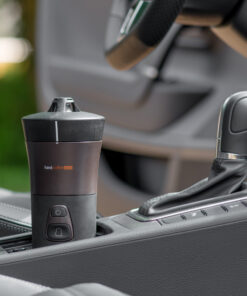 Muy compacta, la cafetera portátil Handcoffee Auto 12V está diseñada para caber perfectamente en el habitáculo de su vehículo (coche, autocaravana o furgoneta). Con su bolsa de transporte y su taza, estará perfectamente equipado para disfrutar de maravillosas pausas para el café cuando esté de viaje.